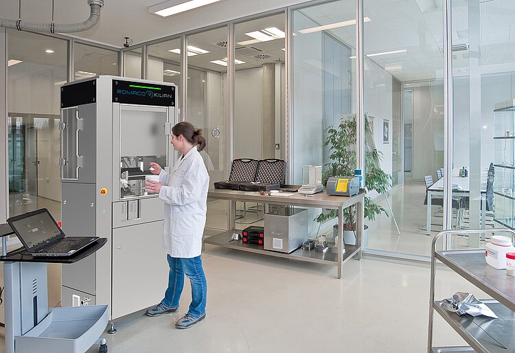 Our test laboratory KiTech can help you find the right customized Kilian solution. Moreover, our KiTech supports you e.g. with speed demonstrations and optimization as well as analyses and optimization of existing tableting processes.